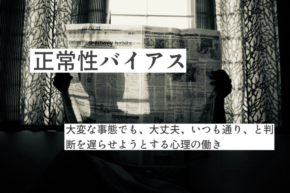 人は急激な変化や脅威にさらされると、強い不安や恐怖を感じる。その負荷を和らげるため、心は現実の意味づけを調整し、正常な日常生活が続いているという感覚を保とうとする。これが、正常性バイアスだ。